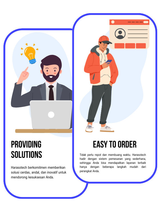 Di Harasotech, kami percaya bahwa teknologi harus menjadi solusi yang mudah, cepat, dan dapat diandalkan bagi siapa saja. Berdiri dengan semangat inovasi, kami hadir untuk membantu bisnis, organisasi, dan individu memanfaatkan teknologi secara maksimal, tanpa ribet. Kami menggabungkan keahlian teknis, pelayanan yang bersahabat, dan pemahaman mendalam akan kebutuhan Anda. Mulai dari pengembangan perangkat lunak, integrasi sistem, hingga konsultasi teknologi, semua kami rancang agar prosesnya simpel, hasilnya maksimal. Bagi kami, setiap tantangan adalah peluang untuk menciptakan solusi cerdas. Dengan tim yang kreatif, adaptif, dan selalu siap membantu, Harasotech bukan sekadar penyedia layanan teknologi — kami adalah mitra perjalanan digital Anda. Misi kami: Membawa teknologi lebih dekat, lebih mudah, dan lebih bermanfaat untuk semua.